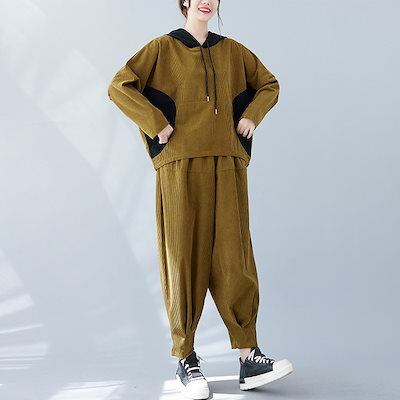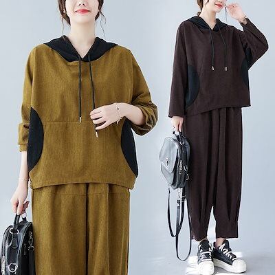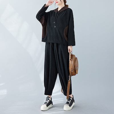 2023人気パーカー長袖トップスワイドパンツ上下二点セットアップ韓国ファッションレディース大きいサイズ春服福袋