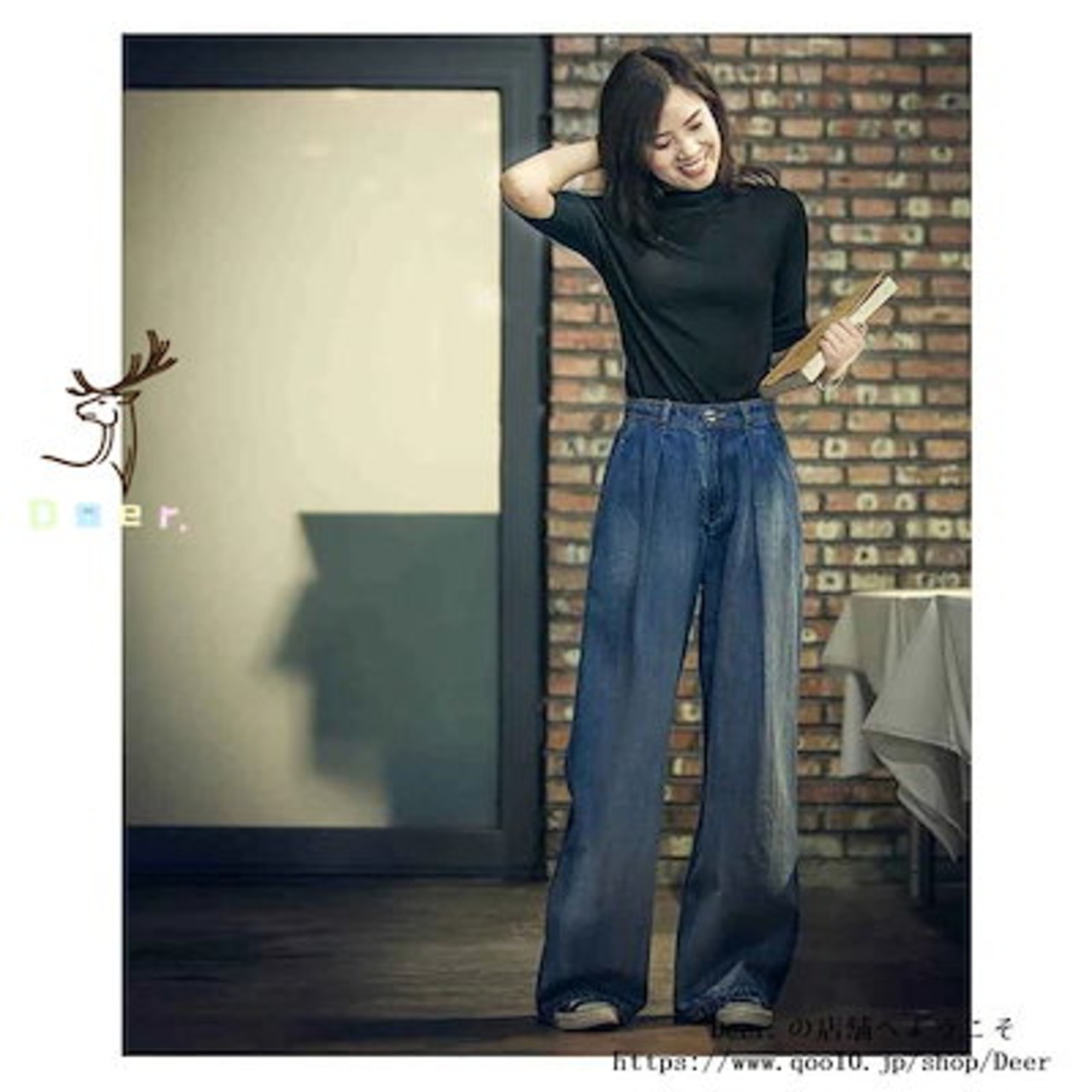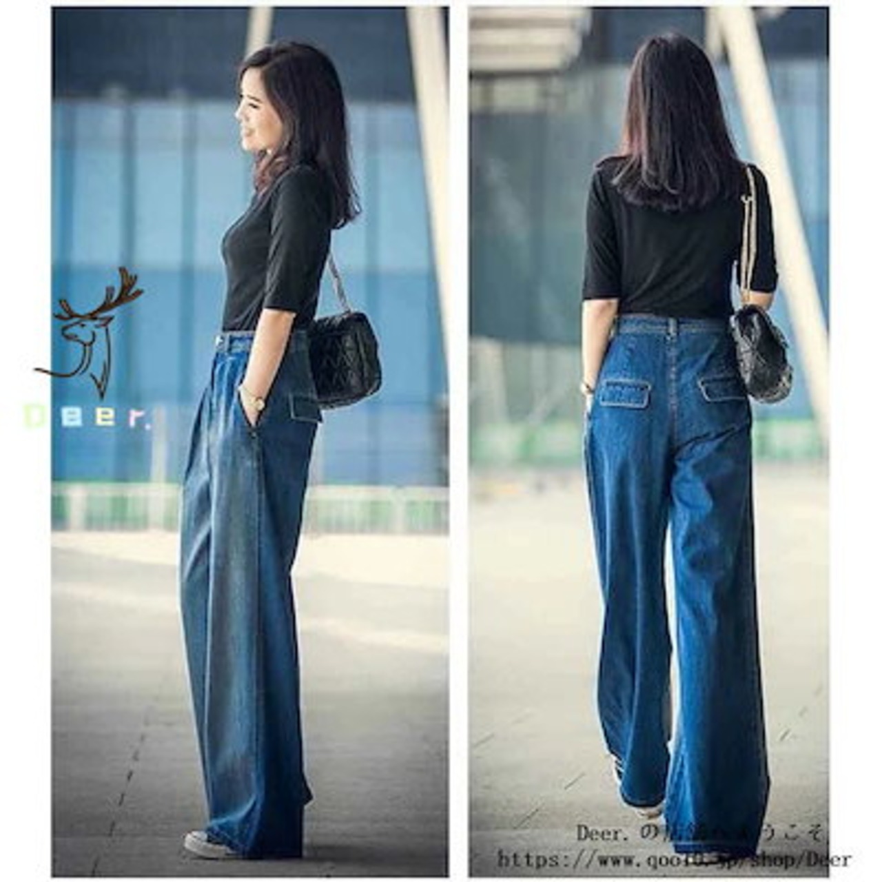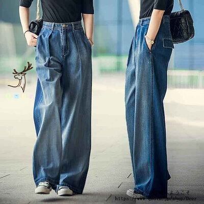 大きいサイズのの韓国版の新型ワイドパンツ レディース ワイドデニム デニムパンツ ワイドパンツ レディース ジーンズ ガウチョパ