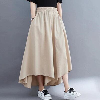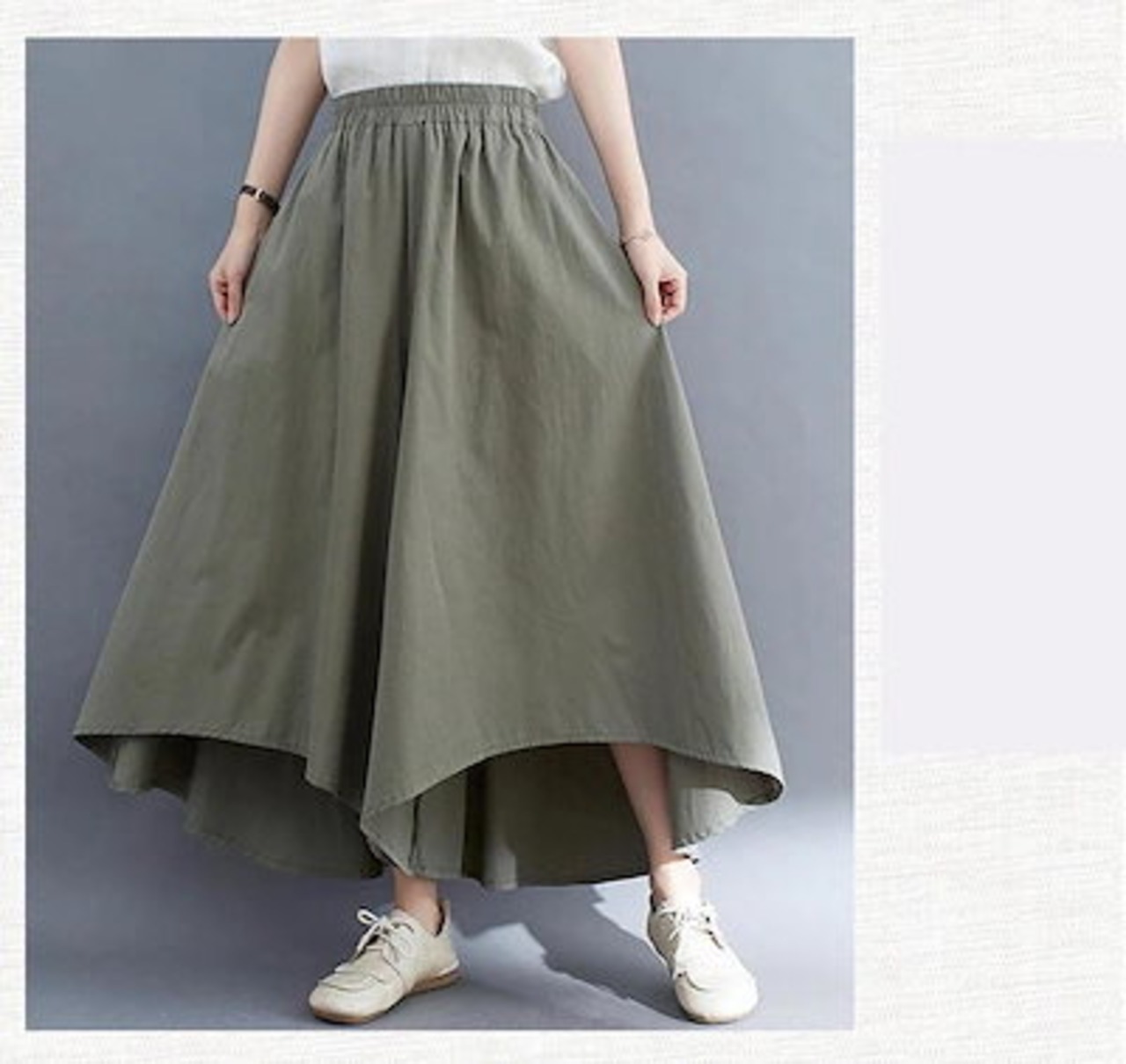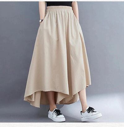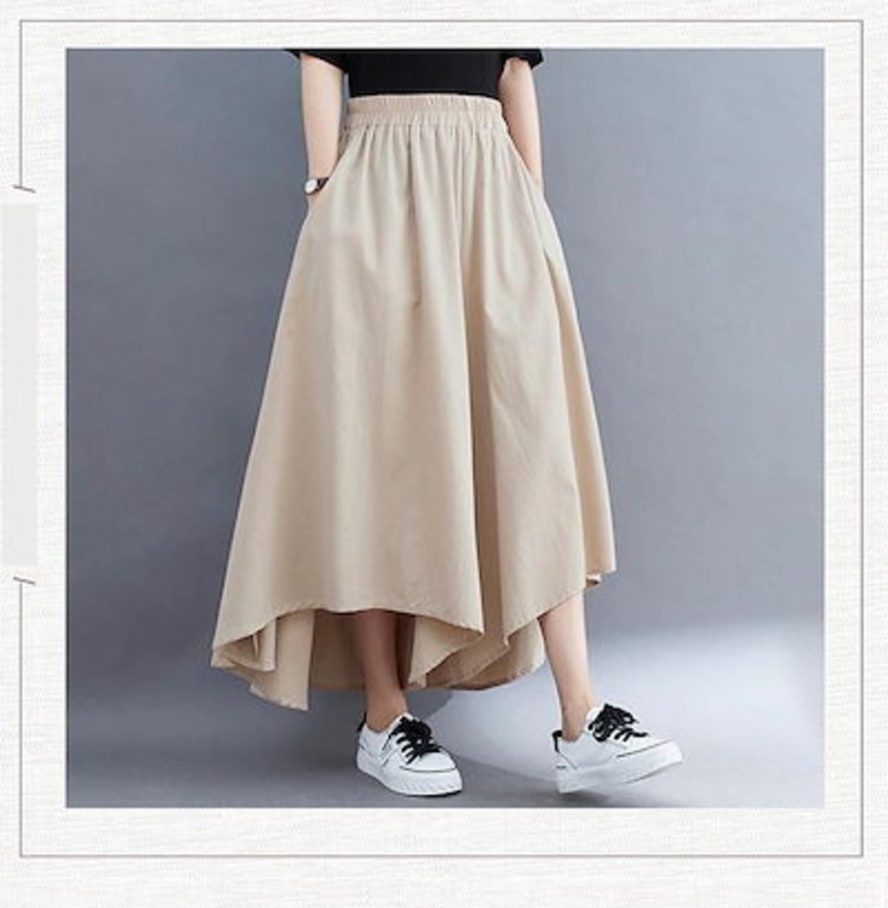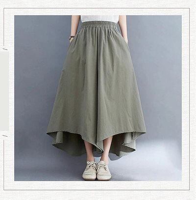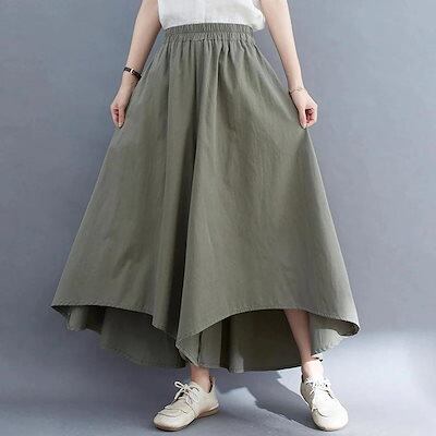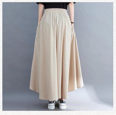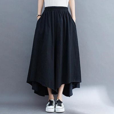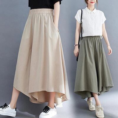 春夏 キュロットスカート 九分丈 ワイドパンツ 体型カバー ゆる 大きいサイズ 不規則裾 スラックス ゴム ハイウエスト レディース 袋付き ロングパンツ フレア メガ割