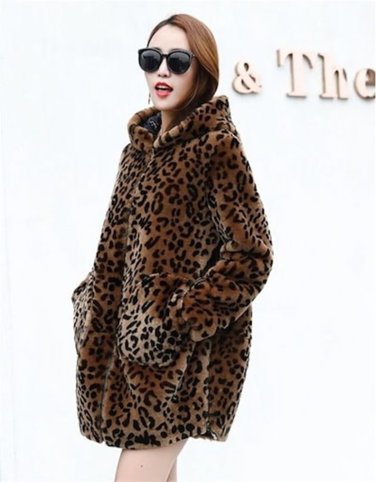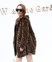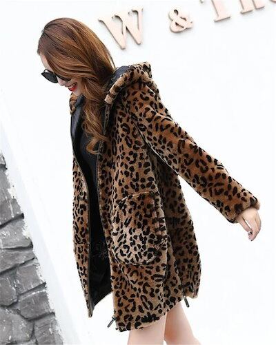 韓国ファッション レディースアウター もこもこアウター 可愛いアウター 中長セクション ヒョウコート フェイクファー ウインドブレーカー