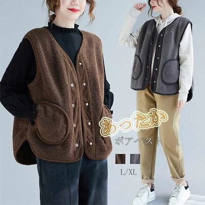 ボアベスト ボア ベスト コート ジャケット ノースリーブ 秋冬 アウター レディース ボアコート ボアジャケット 羽織 上着 重ね着 ライトアウター 前開き 秋 冬 ポケット付き もこもこ コート