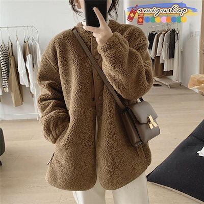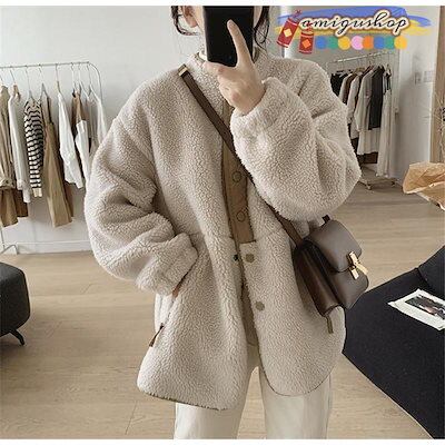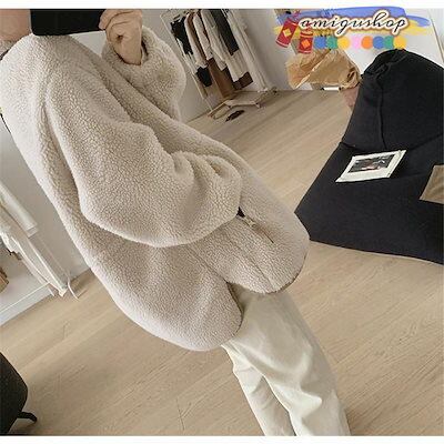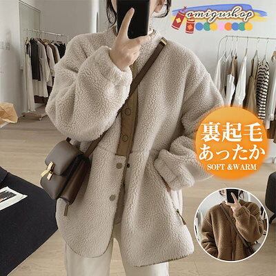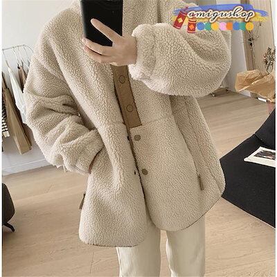 フリースジャケット レディース ボアジャケット ボアコート パーカー ブルゾン 軽量 もこもこ 無地 防寒 保温 体型カバー ゆったり アウター