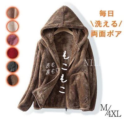 ボア パーカー レディース フリース ブルゾン アウター カーディガン ジップアップ 裏起毛 厚手 暖かい もこもこ ふわふわ フード付き 防寒