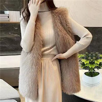 アウター ファーベスト レディース ベスト ファーコート 必須のアイテム! ロングベスト ロング ジレ もこもこ 大きいサイズ 体型カバー 上品 ファージャケット ノースリーブ コーディガン