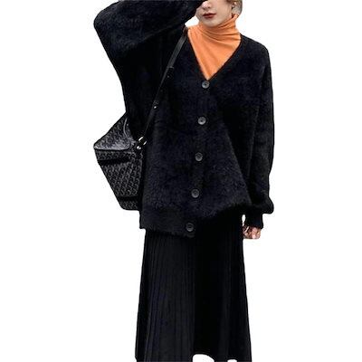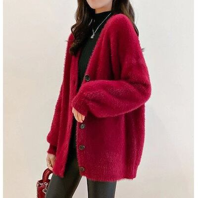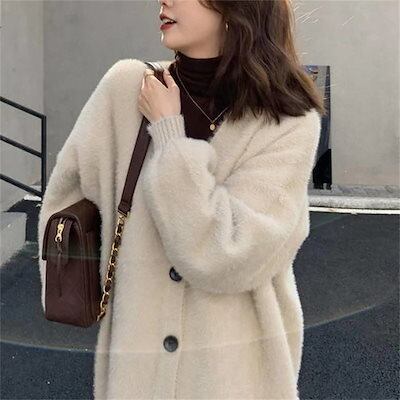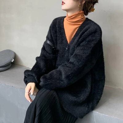 ニットカーディガン 厚手 レディース ゆったり ボリューム袖 アウター トップス 前開き もこもこ暖かふわふわ 体型カバー フェミニン 無地 ゆったり 柔らか 韓国ファッション セーターメガ割