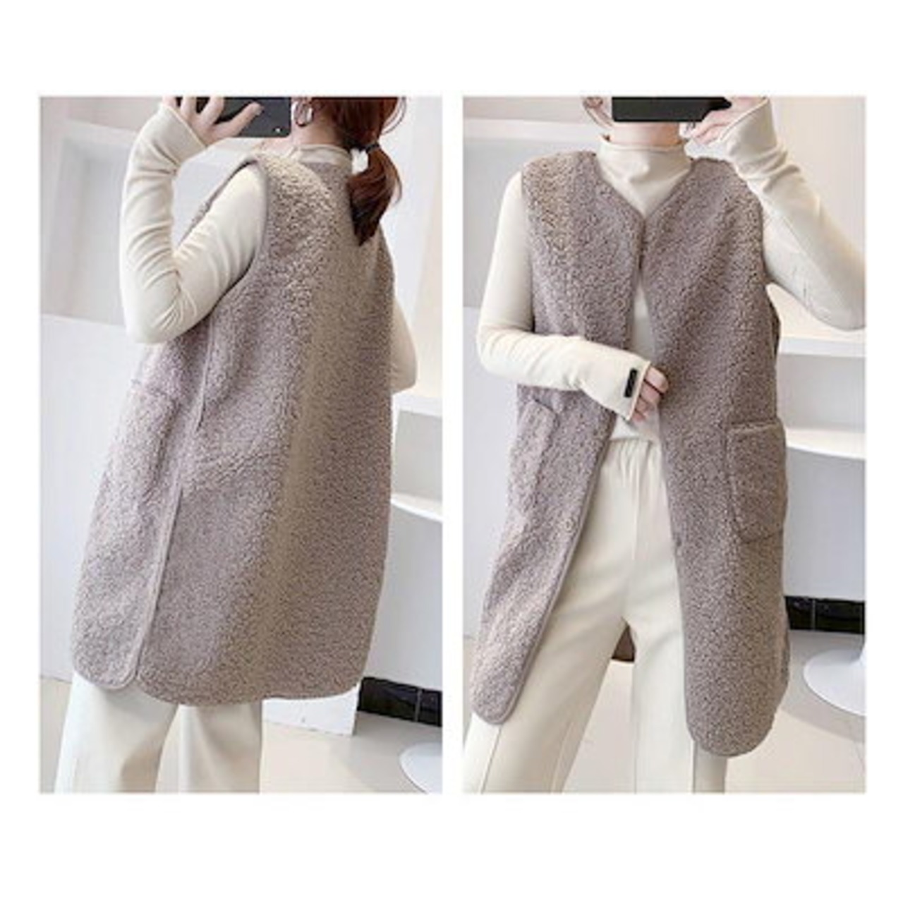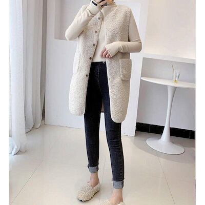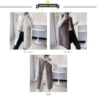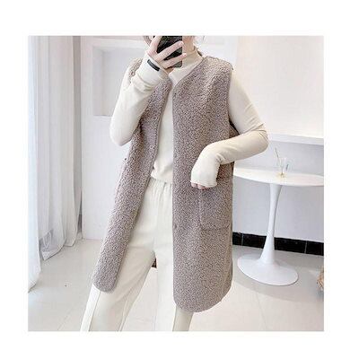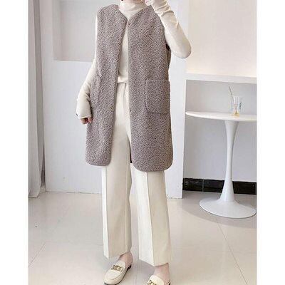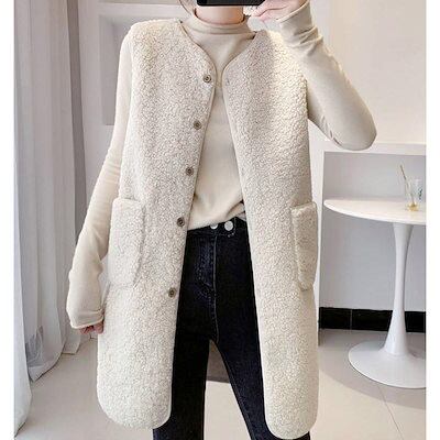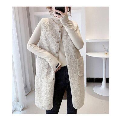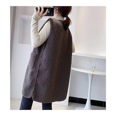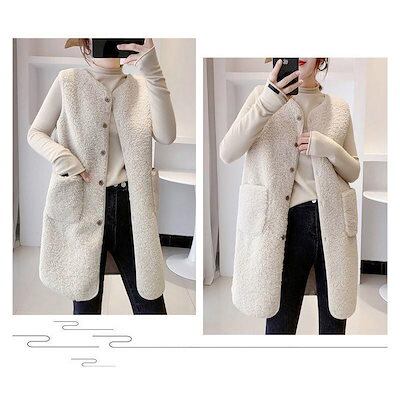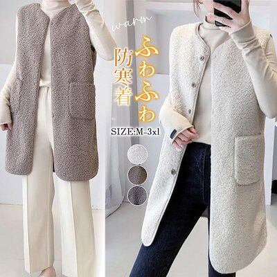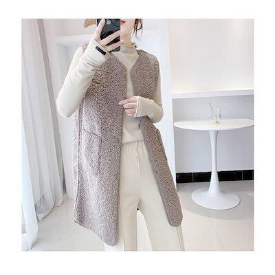 改良版加厚ボア レディース ジャケット アウター チョッキ ロング丈 フリース 前開き もこもこ 着痩せ 体型カバー