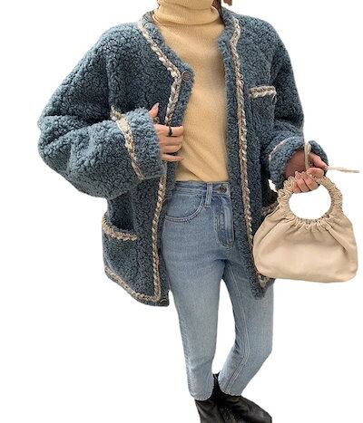 24 アウター もこもこ レディース 新作 ラムウールレディース厚みのあるショートスタイル 人工毛皮 エコレザー