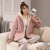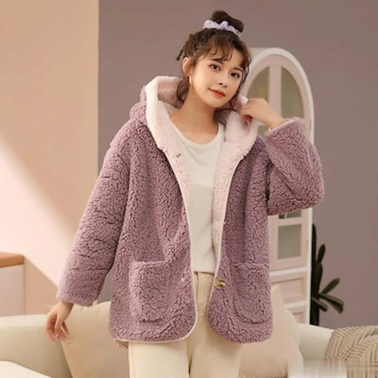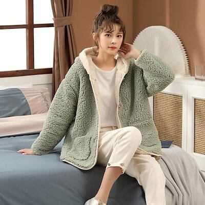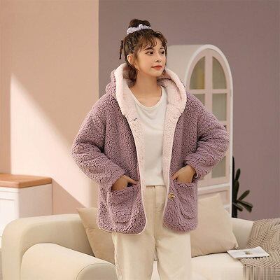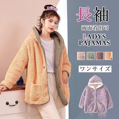 新は通常通り出荷ウェア レディース 上着 フード付き アウター ジャケット モコモコ 長袖 フランネル 寝巻き もこもこ あったか 暖かい 部屋着