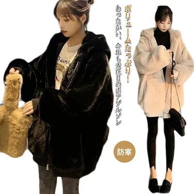ファーコート フード付き コート アウター ジャケット レディース 大きいサイズ フェイクファー ボアパーカー きれいめ ふわふわ もこもこ 前開き 暖かい 防寒 防風 デイリー コート