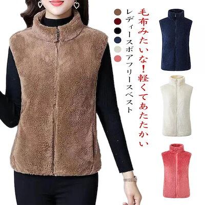 【メガ割 】【福袋】ボアベスト レディース フリース ボア ベスト ジレ もこもこ 前開き アウター フリースベスト ボアジャケット ノースリーブ 袖なし 厚手 スタンドカラー 立ち襟 起毛 ウェア