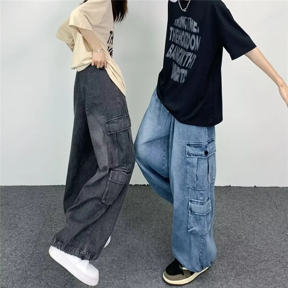 男性と女性のためのヒップホップジーンズ,ワイドレッグカーゴパンツ,ストレート,ルーズフィット,ラージポケット,トレンディ,フォーシーズン,2022 y2k ボトムス T240901102952_01