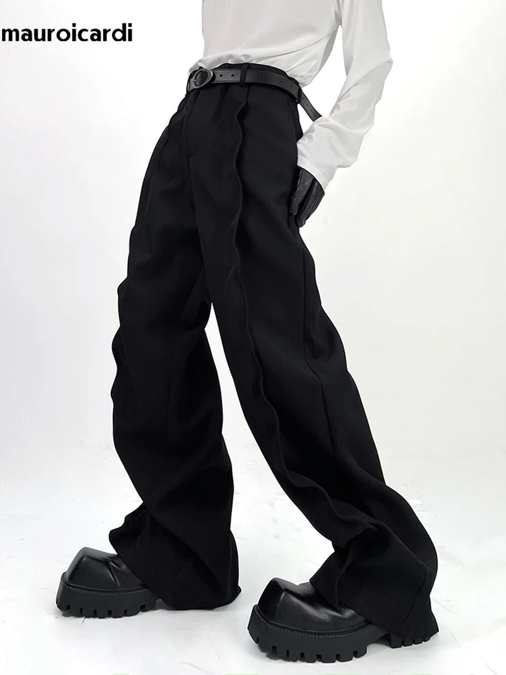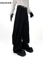 Marouicari-メンズフローリーバギーワイドレッグパンツ、エクストラロング、ブラック、ルーズ、カジュアル、ソフト、グレー、ファッション衣類、春、2024 y2k ボトムス T240901103054_02