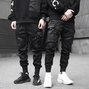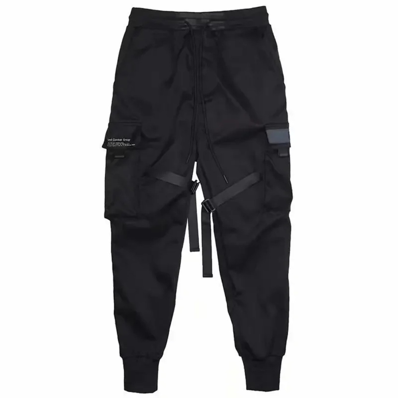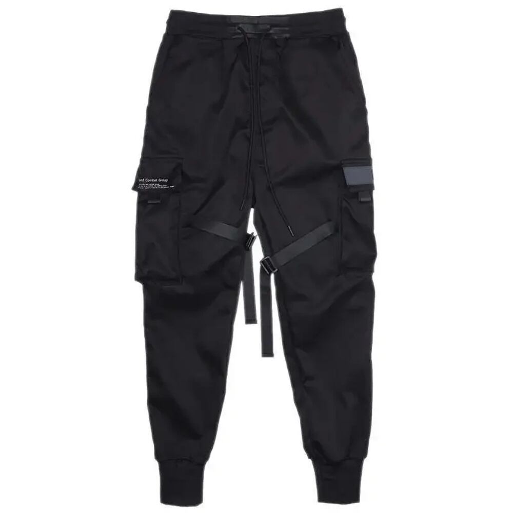 男性用ルーズフィットカーゴパンツ、黒忍者隠し戦士、カジュアルタクティカルパラトルーパー、シルエットを滑らかにし、トレンディ y2k ボトムス T240901103455_01