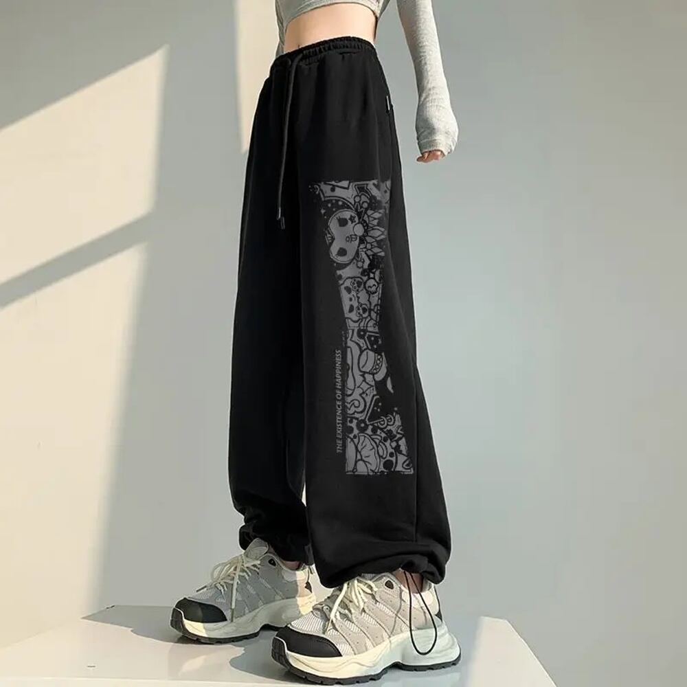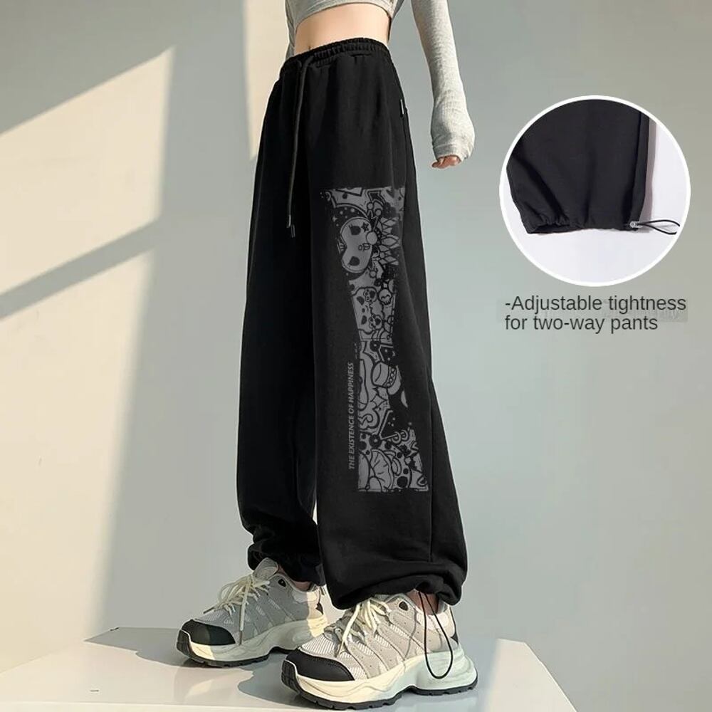 女性のためのsanrio kuromi漫画パンツ、ワイドレッグパンツ、ハイウエスト、ヒップホップストリートウェア、カジュアルスポーツパンツ、y2k y2k ボトムス T240901105100_03