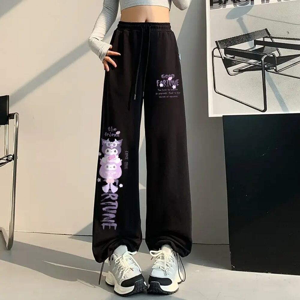 女性のためのsanrio kuromi漫画パンツ、ワイドレッグパンツ、ハイウエスト、ヒップホップストリートウェア、カジュアルスポーツパンツ、y2k y2k ボトムス T240901105100_05