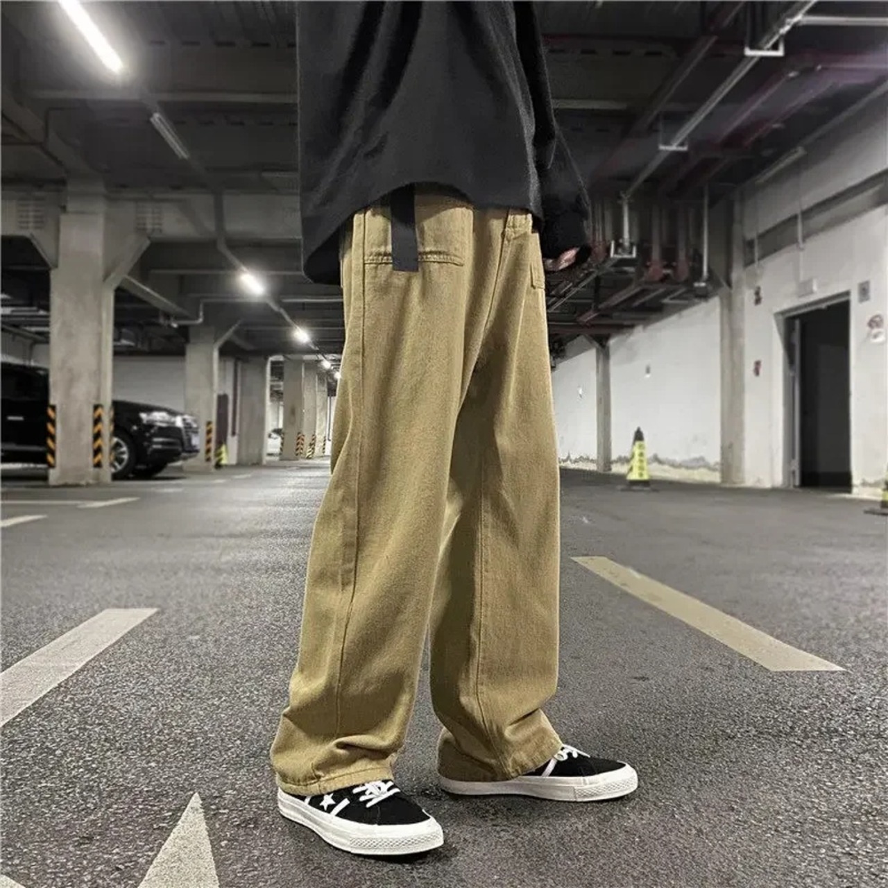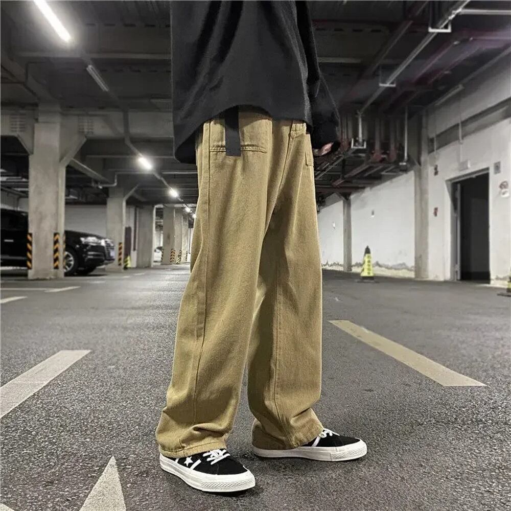 メンズワイドレッグカーゴパンツ,カジュアルウェア,ルーズフィット,ストレート,ヴィンテージ,無地,ファッショナブル y2k ボトムス T240901105911_03