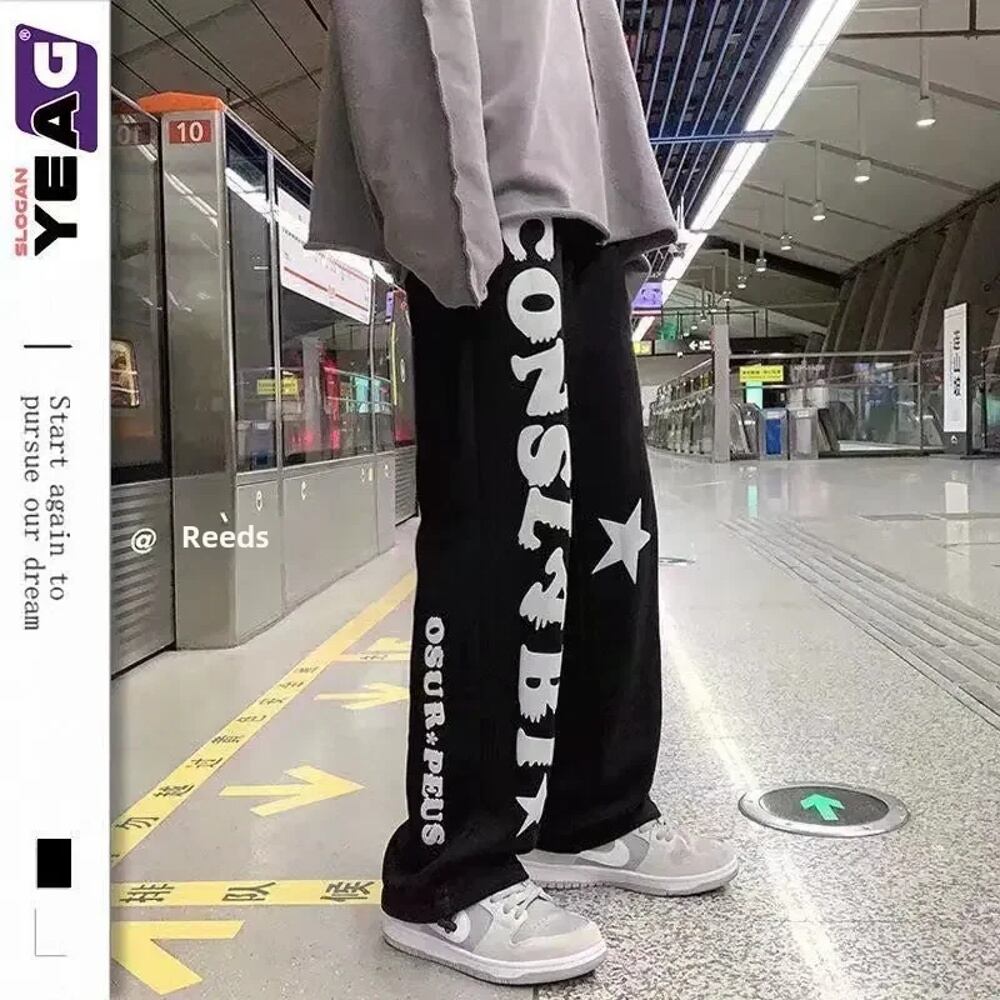 メンズストレートレッグパンツ,カジュアル,ヒップホップスタイル,レタリングプリント,トレンディ,韓国,アメリカ,春,秋 y2k ボトムス T240901110305_02