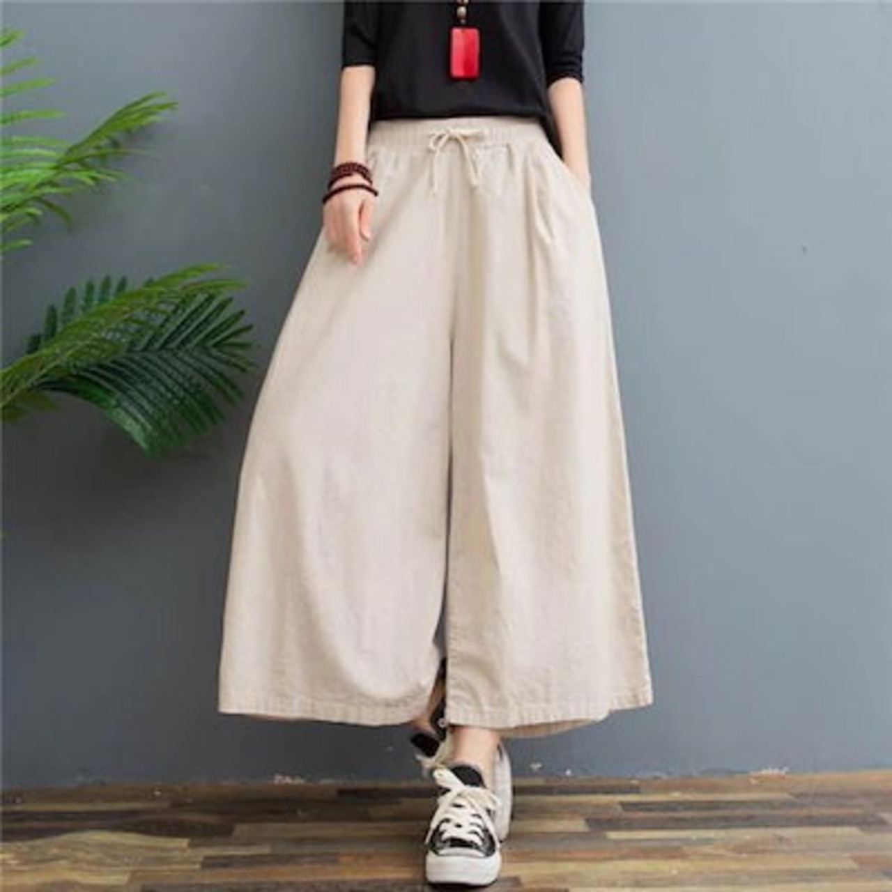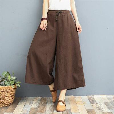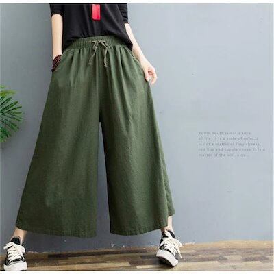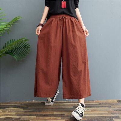 パンツ スカーチョ ワイドパンツ ガウチョ スカンツ レディース 綿麻 体型カバー ハイウエスト ン ポケット付き
