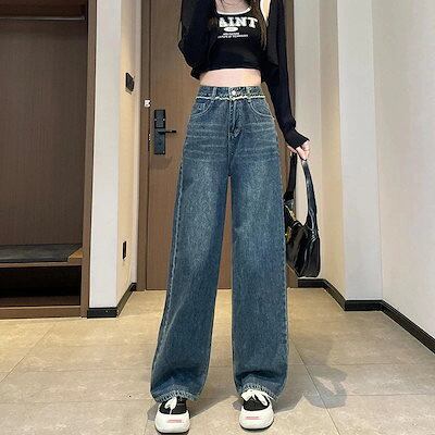 メガ割 デニム パンツワイドパンツ涼感ワイドパンツ デニム調 フリル ベルト飾り ハイウエスト ブーツカット レディース ガウチョパンツ 薄福袋