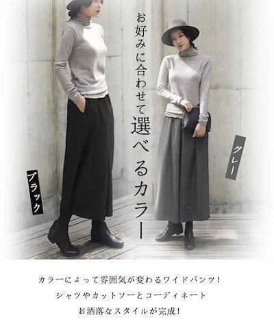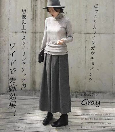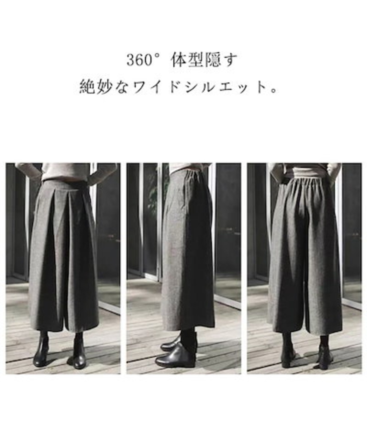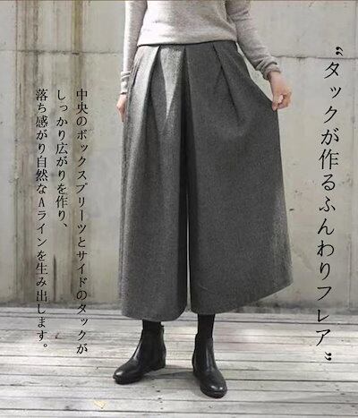 24発売 パンツ レディース きれいめ ガウチョパンツ 暖かい ワイドパンツ スカーチョ ボリューム ゆったり 体型カバー ウールパンツ 美脚 フェイクウール スカンツ 低身227