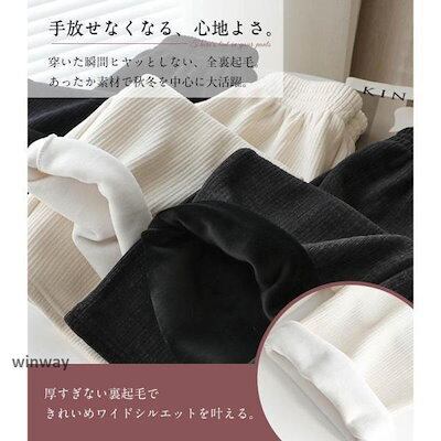 メガ割 ワイドパンツ 裏起毛パンツ 裏起毛パンツワイドパンツ レディース マキシ丈パンツ ガウチョパンツ コーデュロイ 体型カバー 着痩せ 暖かい