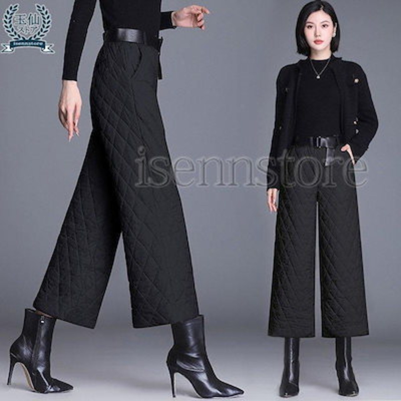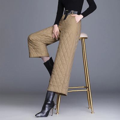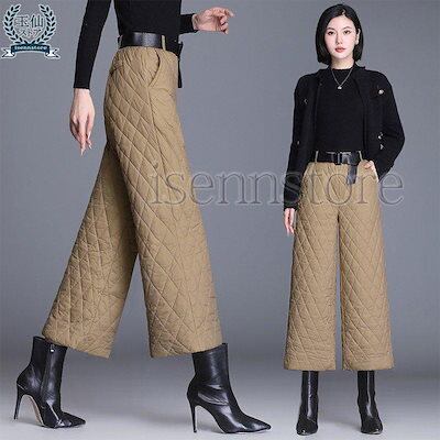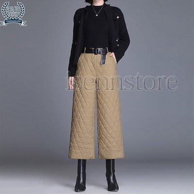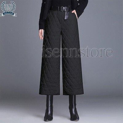 冬ファッション ダウンパンツ 軽量パンツ キルティングダウンパンツ ワイド ゆったり レディース 9分丈 ガウチョパンツ シンプル 無地