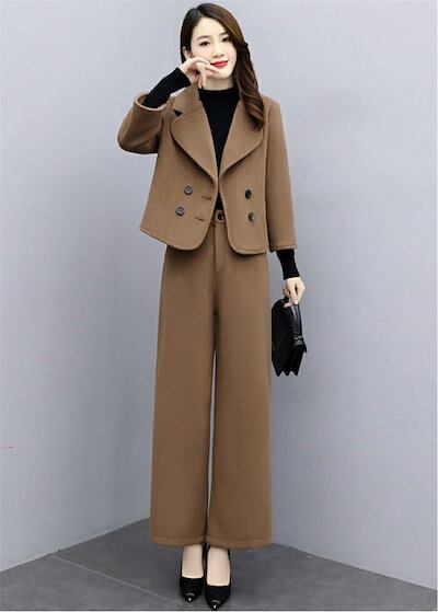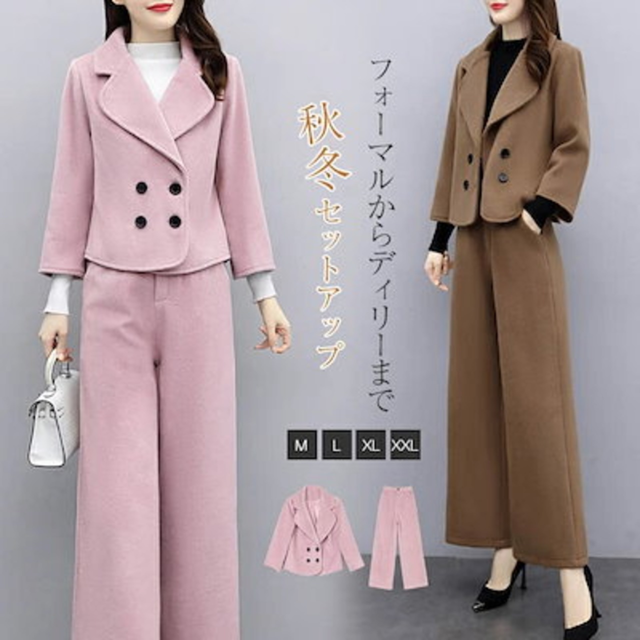 セットアップ レディース ガウチョパンツ ワイドパンツ スーツ コート 秋冬 ウール混コート 秋 冬 春 厚手 テーラードジャケット ゆったり フォーマル 卒業式 入学式 入園式 きれいめ 上品 セレ