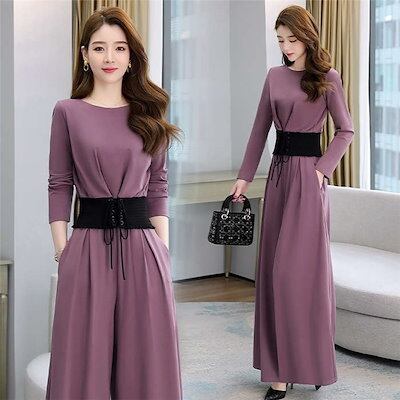 セットアップ レディース 上下セット ブラウス 2点セット パンツスーツ ワイドパンツ レディース ウエストゴム ガウチョパンツ フレアパンツ ロングパンツ マキシ丈 スカンツ トップス 長袖 パンツ