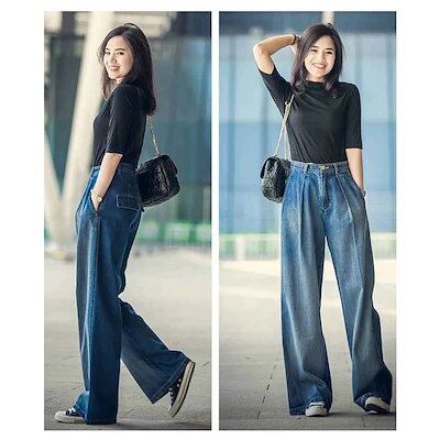メガ割 ワイドパンツ レディース ワイドデニム デニムパンツ ワイドパンツ レディース ジーンズ ガウチョパ