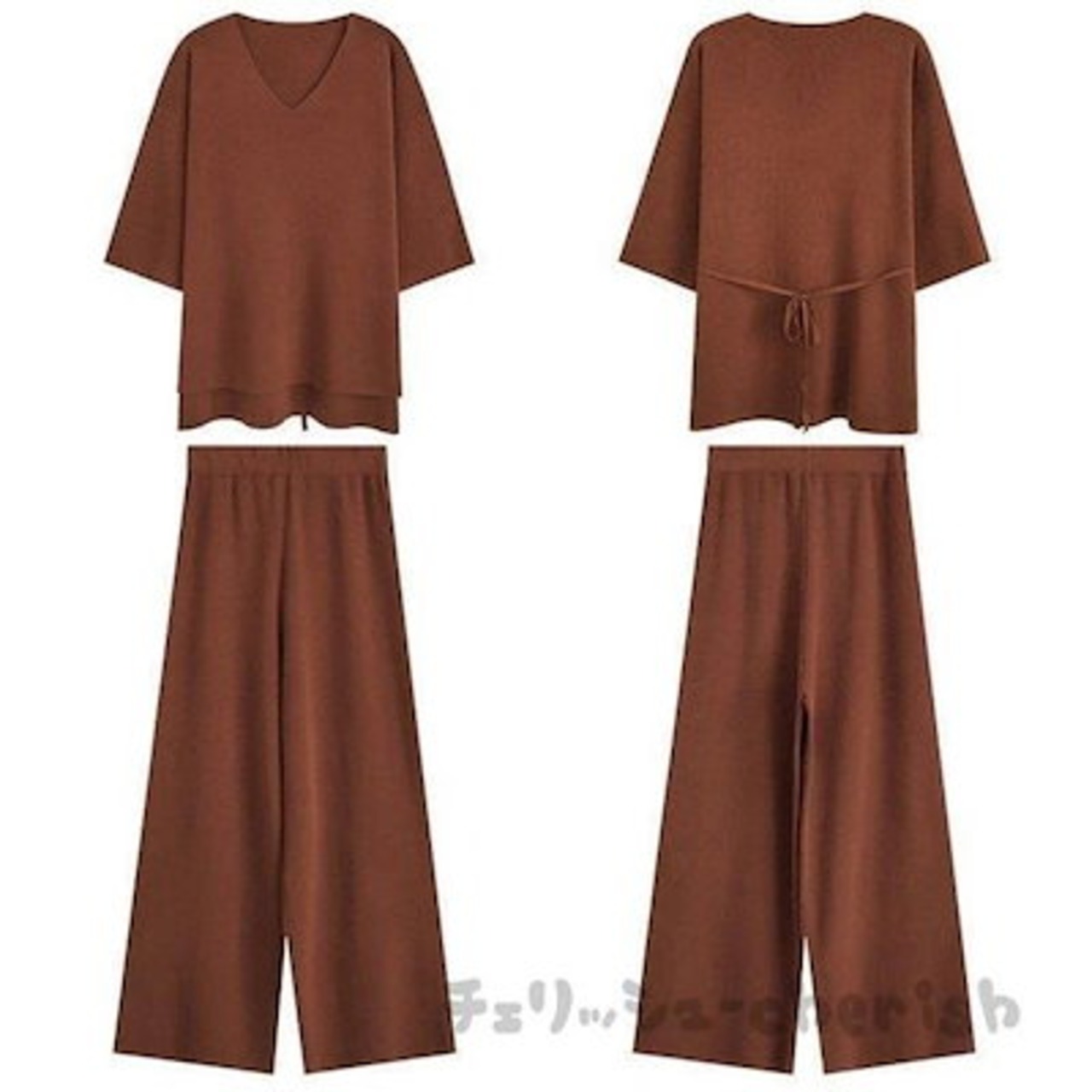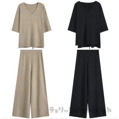 メガ割 2件購入でさらに200円FFニットセットアップ パンツセットアップ ニット レディース 上下セット ニットパンツ ニットセーター ガウチョパンツ ゆったり ワイドパンツ 30代 40代