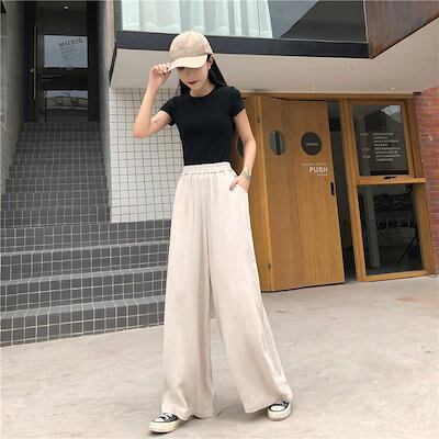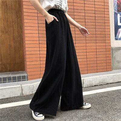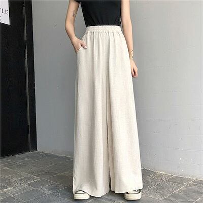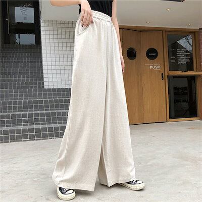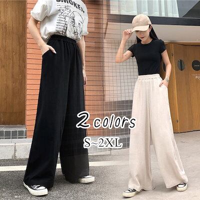 ワイドパンツ レディース 春 夏 秋 冬 白 黒 S-2XL ロングパンツ ハイウエスト リラックスパンツ ガウチョ ウエストゴム ゆったり おしゃれ 体型カバー 仕事 通勤 オフィス 30代 40代