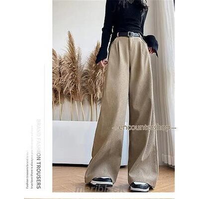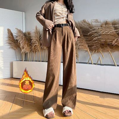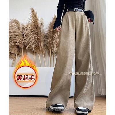 ワイドパンツ レディース 裏起毛 ストレート チノパン スラックス ガウチョパンツ ハイウエスト ゆったり ルーズ 防寒 着痩 冬服 暖か 通勤 通学