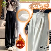 ワイドパンツ レディース 秋冬 ロング丈 コーデュロイ ハイウエスト 二つボタン カジュアル あったか 裏起毛パンツ シンプル 大人可愛い30%までに制限