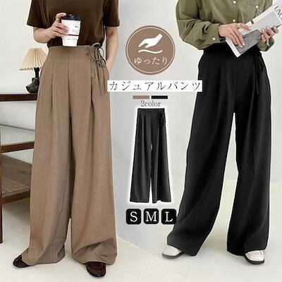ボトムス ワイドパンツ レディース パンツ イージーパンツ ストレートパンツ シンプル カジュアル ウエストゴム ゆったり 大きいサイズ リラックスパンツ 無地 大人 可愛い おしゃれ きれいめ 着回