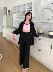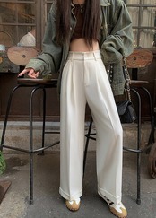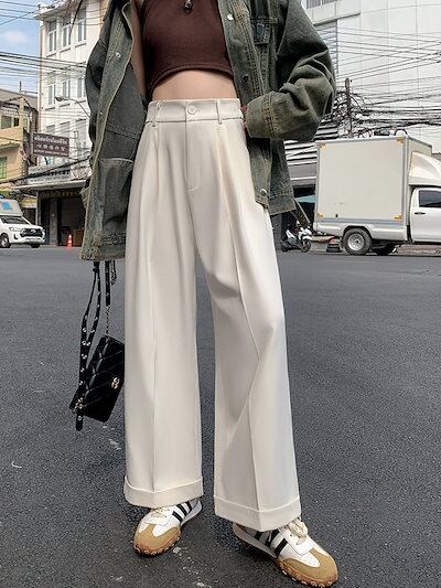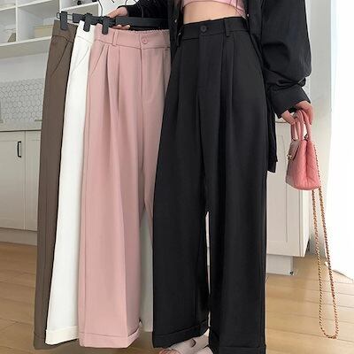 24 パンツ ロング丈 ワイド ストレート ハイウエスト 美脚効果 脚長効果 細見え 黒 白 緑 おしゃれ かわいい 韓国ファッション レディース お出かけ