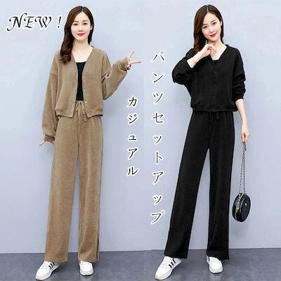 新作 おしゃれ 気質 カジュアル セットアップ 長袖 ジャケット ワイドパンツ 二点セット オシャレ 可愛い 百掛け 通勤 レディースファッション 大きいサイズ30%制限