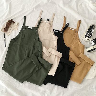 サロペット 4色 サロペット オーバーオール ワイドパンツ シンプル 無地 レディース キャミ ガウチョパンツ かわいい