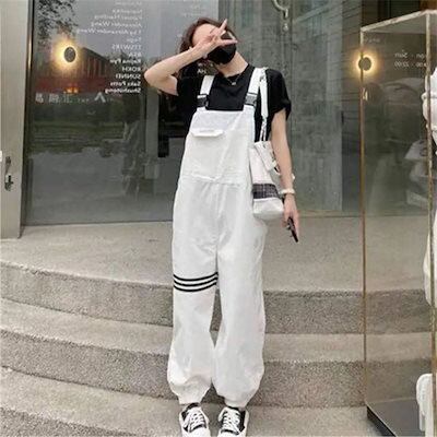 大きいサイズレディース服 レディー 韓風ファッションサロペットパンツロングワイドパンツゆったり着痩せ効果 ハイウエストジーンズ可愛い