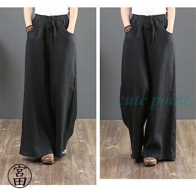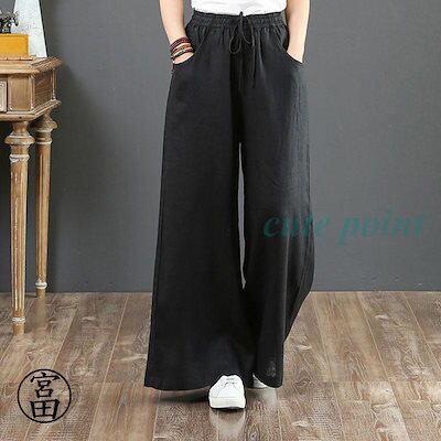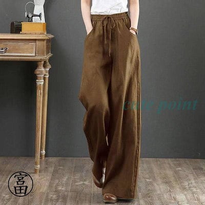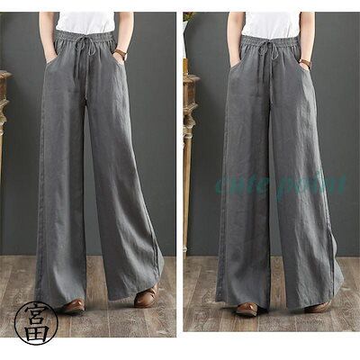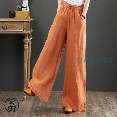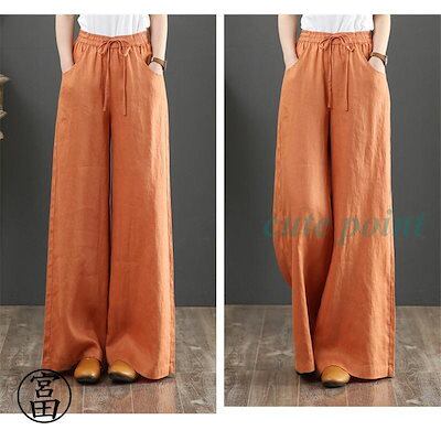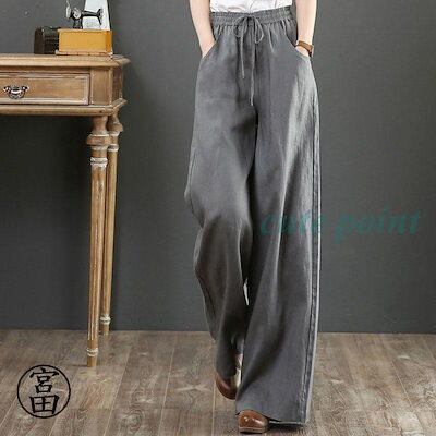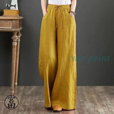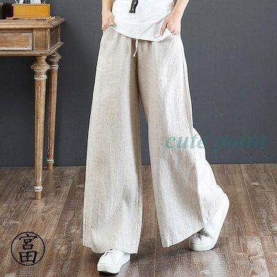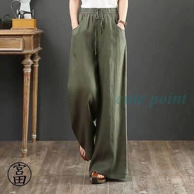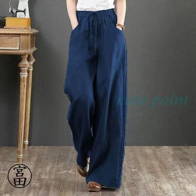 パンツ レディース きれいめ 通販 リネン ストレートパンツ ワイドパンツ おしゃれ ハイウエスト 長ズボン ロングパンツ ウエスト ゴム 可愛い