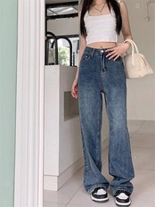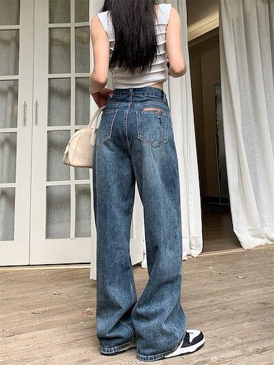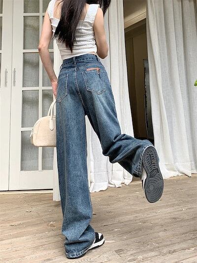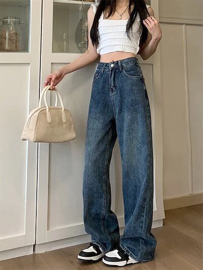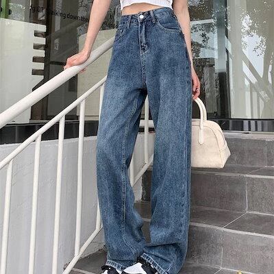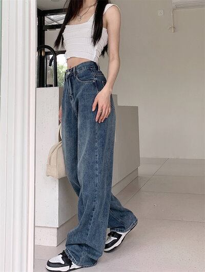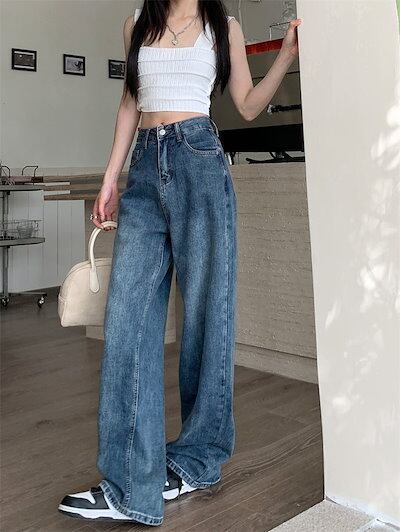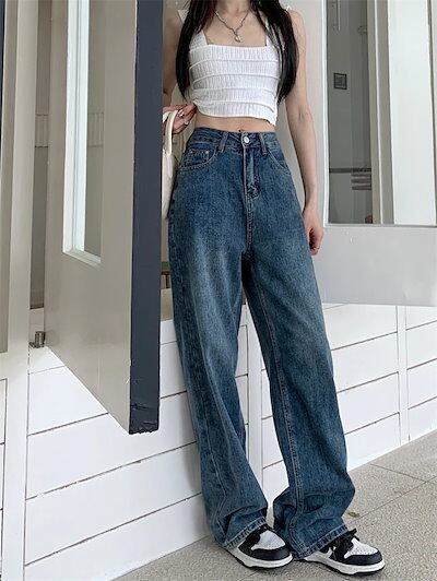 24パンツ デニム ジーンズ ワイド ストレート ハイウエスト 脚長効果 美脚効果 細見え カジュアル おしゃれ かわいい シンプル 韓国ファッション レディース お出かけ
