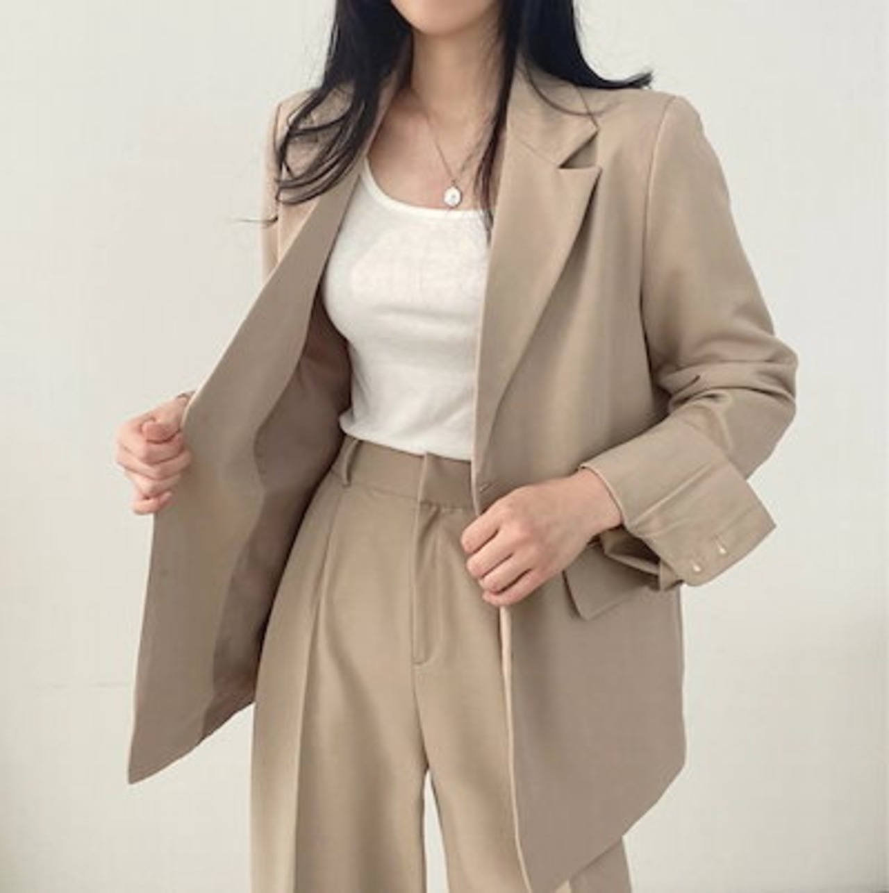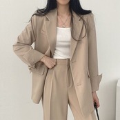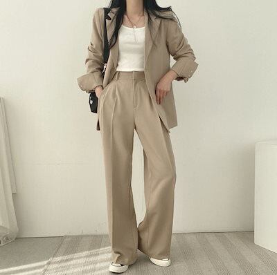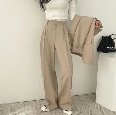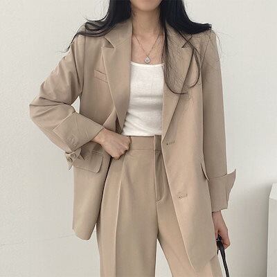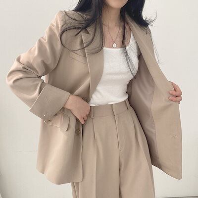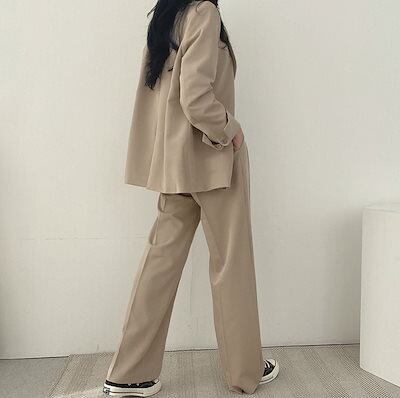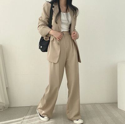24 カジュアルセットアップ ボタンブレザー+ハイウエストドレープパンツ ドラッグワイドパンツ トラウザーウエスタンパンツ長袖 おしゃれ かわいい 韓国ファッション レディース お出かけ
