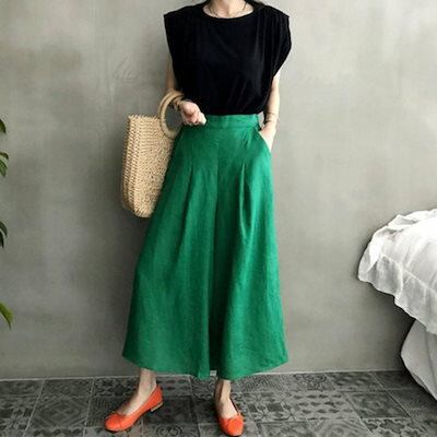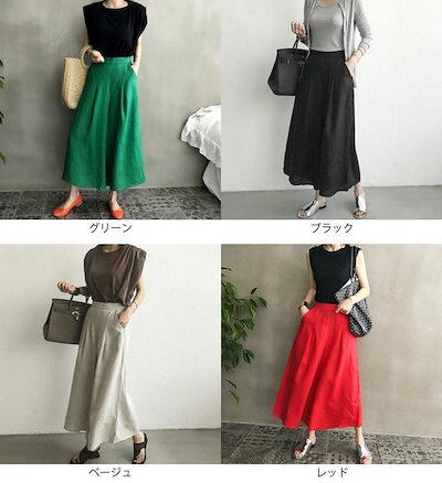 レディースパンツワイドパンツロングスカート風ロング丈ハイウエストボトムスナチュラルカジュアル大人可愛いフェミニンきれいめおしゃれお出かけデートママコーデグリーンブラックベージュレッドMLXLサイズ