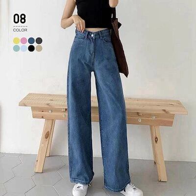 ワイドデニム パンツ レディース ボトムス ロング ジーンズ 大きいサイズ ゆったり ジーパン 体型カバー おしゃれ きれいめ 可愛い 50代 40代 30代 20代