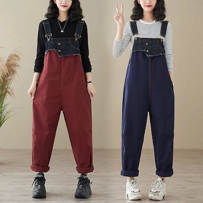 欧米学生レディースハイウエスト大きいサイズ オーバーオール可愛いプリントお洒落若見え脚長効果ワイドパンツ QYYF768