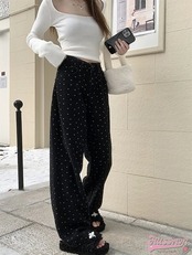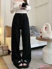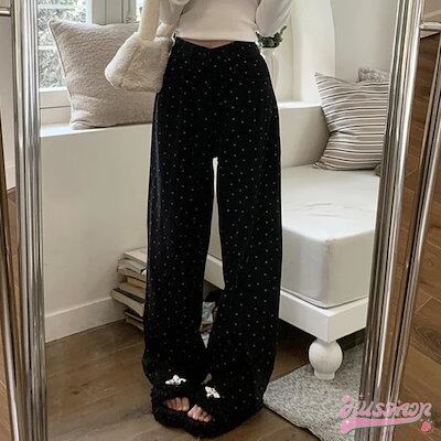 24パンツ ワイド ストレート 花柄 ハイウエスト 脚長効果 美脚効果 細見え ブラック 黒 甘辛 かわいい おしゃれ カジュアル 韓国ファッション レディース お出かけ
