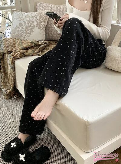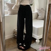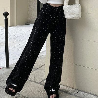 メガ割 24パンツ ワイド ストレート 花柄 ハイウエスト 脚長効果 美脚効果 細見え ブラック 黒 甘辛 かわいい おしゃれ カジュアル 韓国ファッション レディース お出かけ福袋