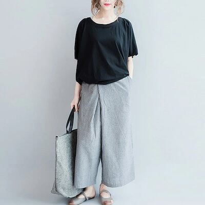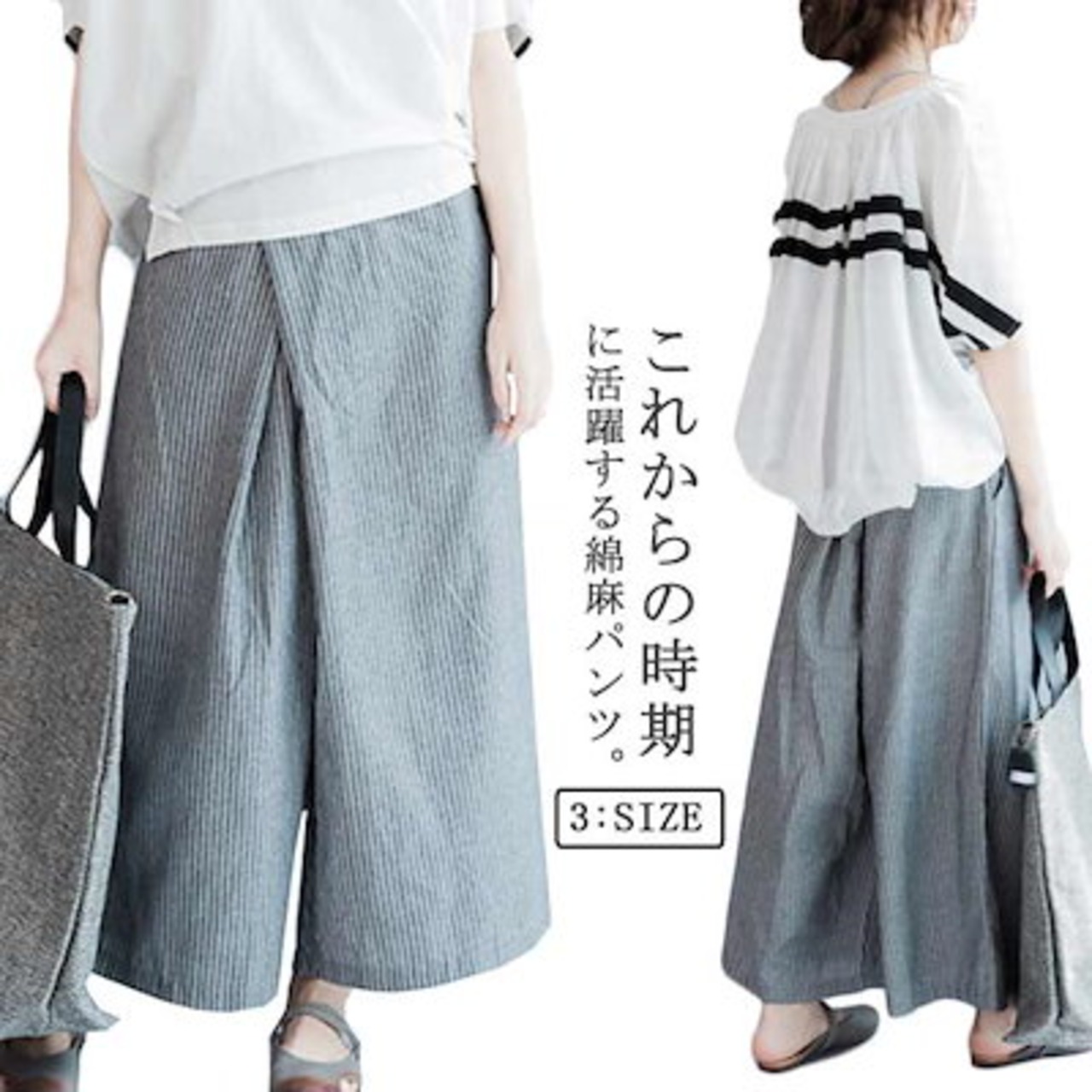 スカンツ 縦縞 ガウチョ 体型カバー きれいめ ガウチョパンツ スカーチョ ストライプ ボトムス パンツ ロング丈 無地 サルエルパンツ ワイドパンツ レディースパンツ チノパン 大人 かわいい ロン