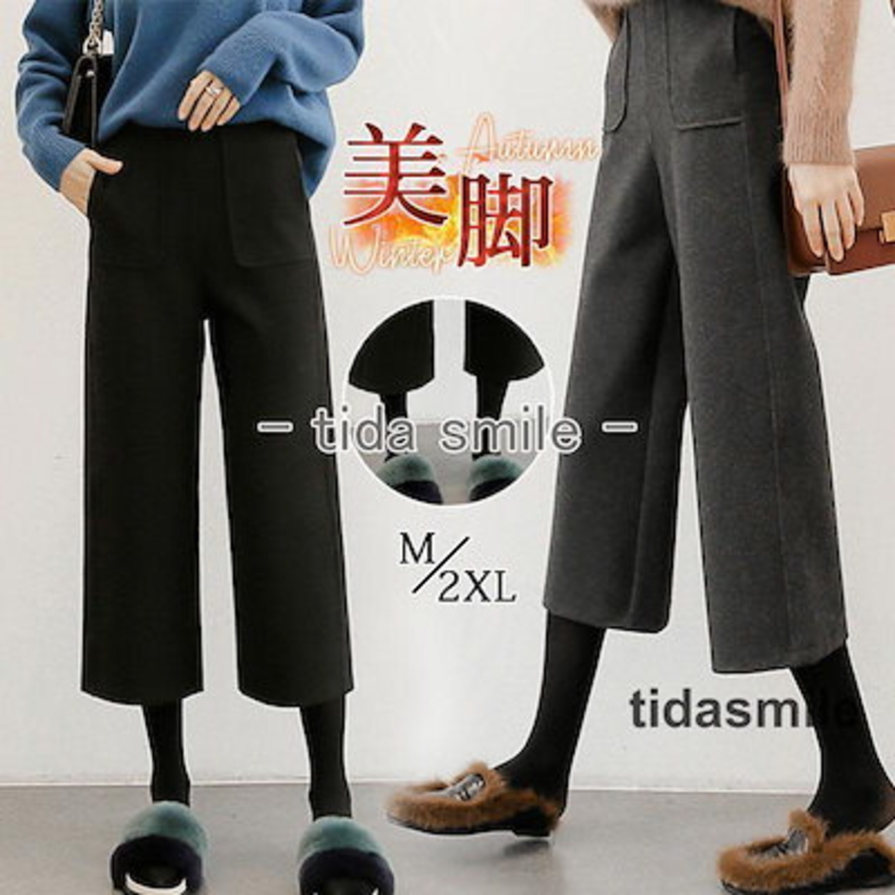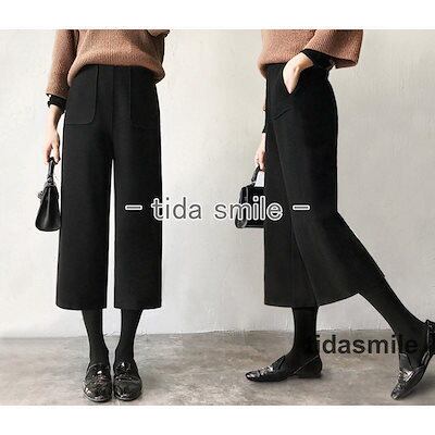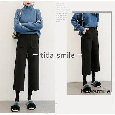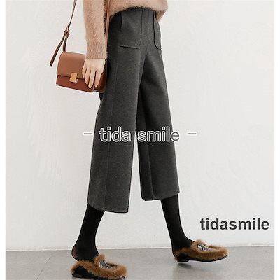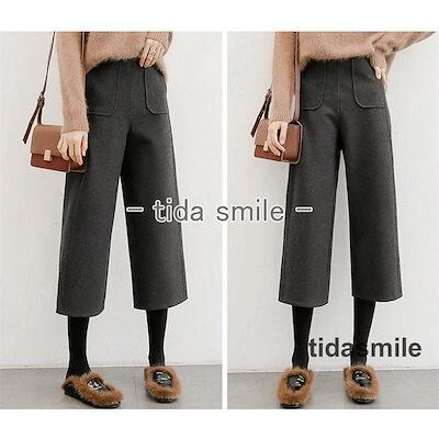 ワイドパンツ ガウチョパンツ レディース 美脚 厚手 スカーチョ カジュアル 無地 オシャレ 女性用 女の子 かわいい ロング丈 着痩せ
