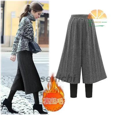 ガウチョパンツ レディース ワイドパンツ ボトムス 暖かい 裏起毛 肌触り ルームウェア カジュアル 体型カバー 可愛い 美脚 秋冬