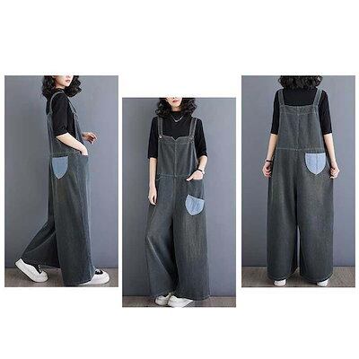 サロペット デニムパンツ オールインワン レディース ワイドパンツ 春 秋 マタニティ きれいめ 着痩せ 大きいサイズ カジュアル おしゃれ 体型カバー ゆったり 女性 お呼ばれ 可愛い 無地 お
